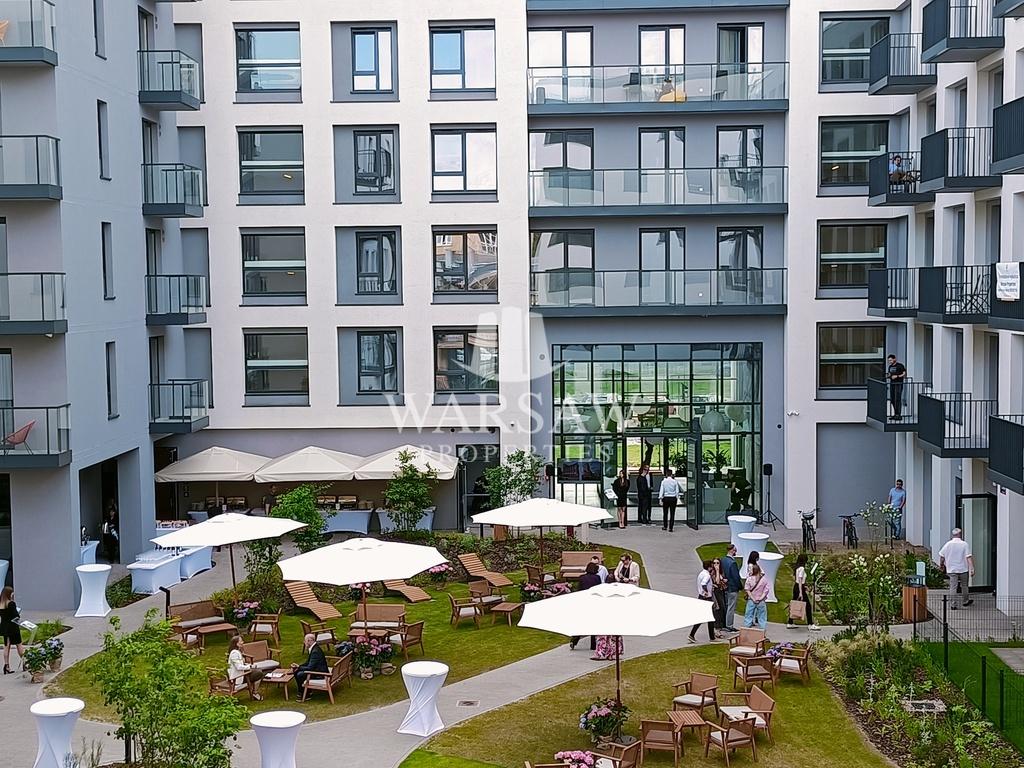 Lokal z widokiem na główne, zielone patio osiedla, bez ruchu kołowego. Ładny widok zachodni
