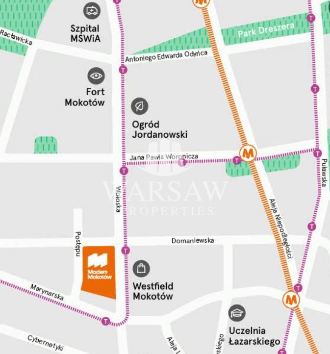 • Excellent transport links: metro (M1 line), numerous bus and tram stops (from Wołoska Street), quick access to the SKM (Fast Urban Rail) train.