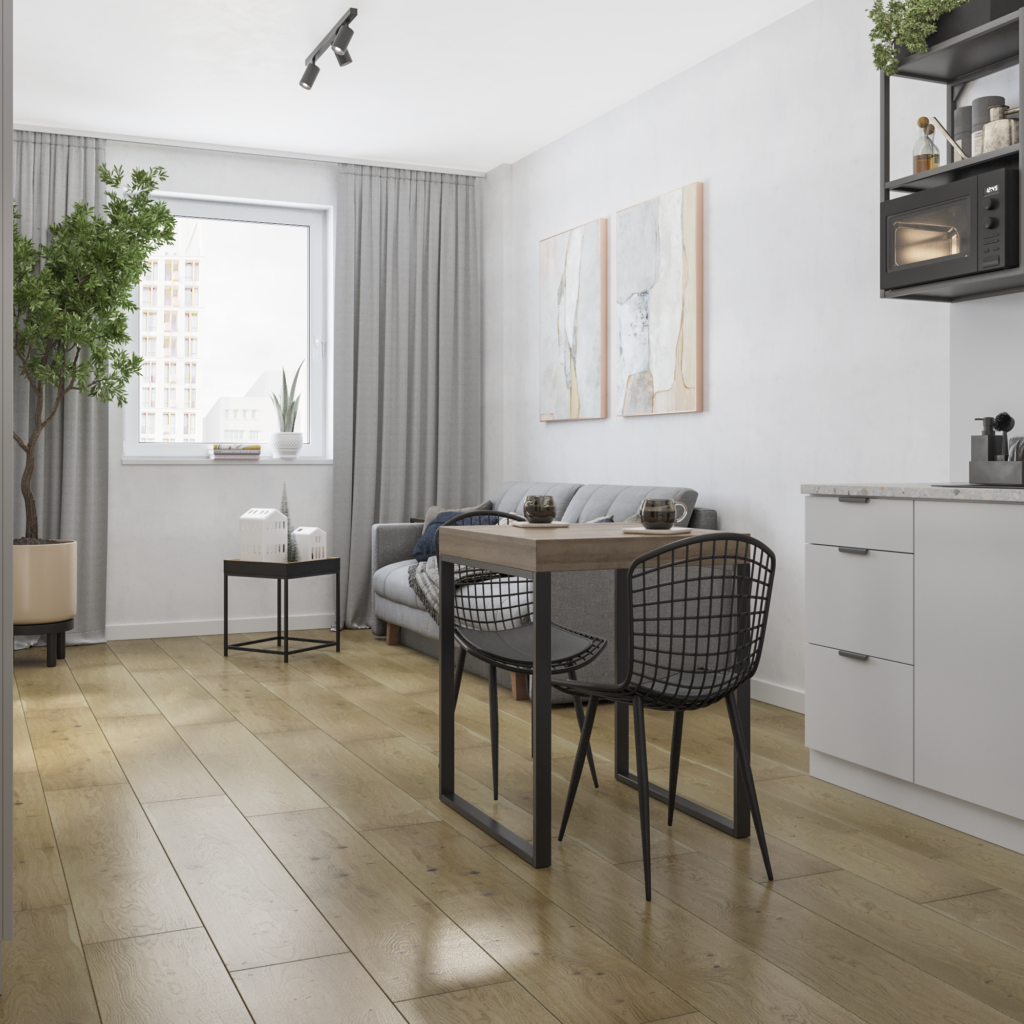 Zobacz jak wyglądają wnętrza kawalerki Pakiet URBAN studio