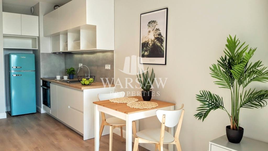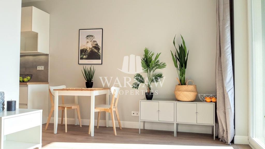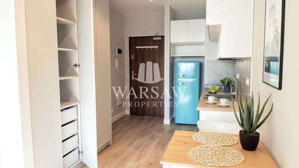 CYBERNETYKI | SŁUŻEWIEC | ELEGANT STUDIO | 4TH FLOOR | LARGE BALCONY | SOUTH VIEW | BEDROOM WITH A 160X200 BED | EQUIPMENT – FURNITURE AND HOUSEHOLD APPLIANCES | WASHER-DRYER | 28 M