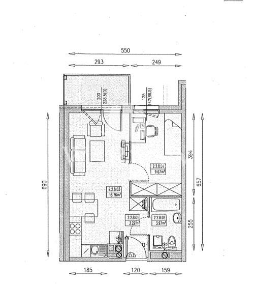 •Living room with kitchen area (2.2.8.03) — 18.76 m²