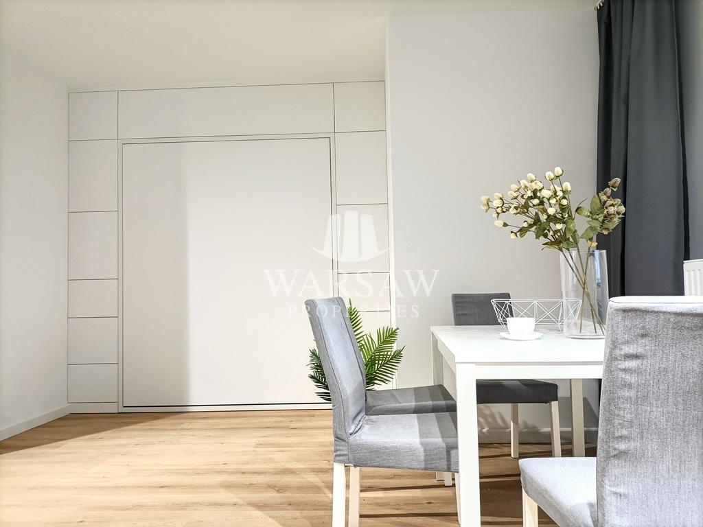 W komfortowo urządzonym studio znajduje się wygodna, rozkładana sofa, część sypialnia z podwójnym łóżkiem (chowanym w zabudowie) oraz pojemne szafy. W lokalu znajdą Państwo wyposażenie niezbędne do codziennego życia – w pełni wyposażona kuchnia, nowoczesna łazienka z pralką oraz liczne szafy.