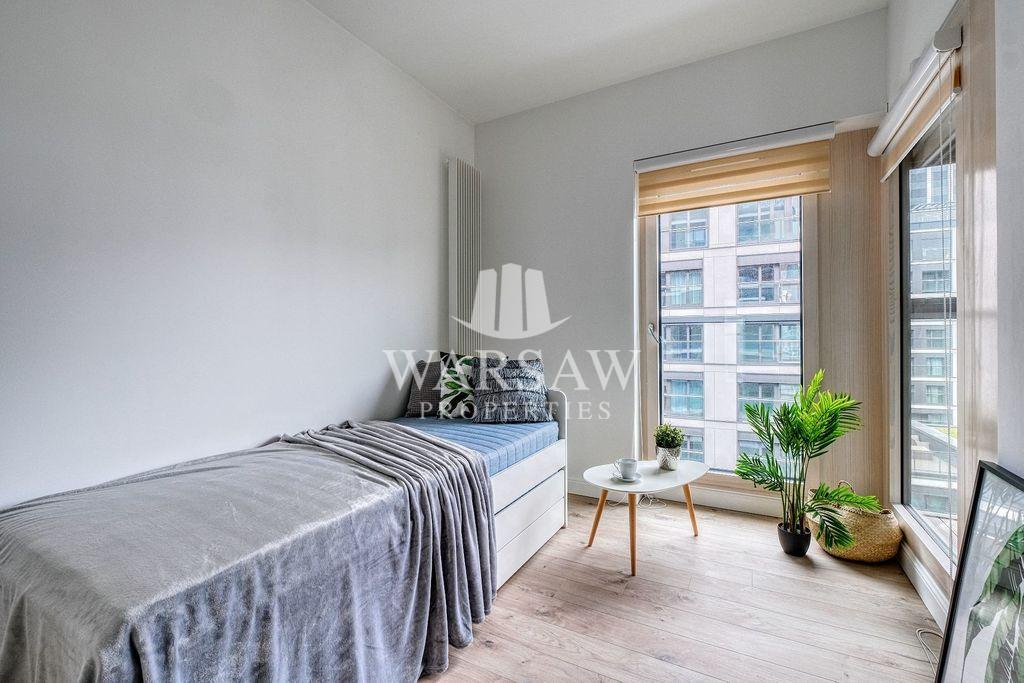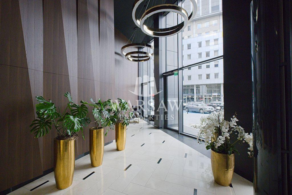 Komfortowy, nowy, klimatyzowany, apartament 3 – pokojowy w najnowszej części prestiżowego apartamentowca, położonego w centrum Warszawy położony na 11 pietrze, z dużymi oknami i ładnym, spokojnym widokiem.