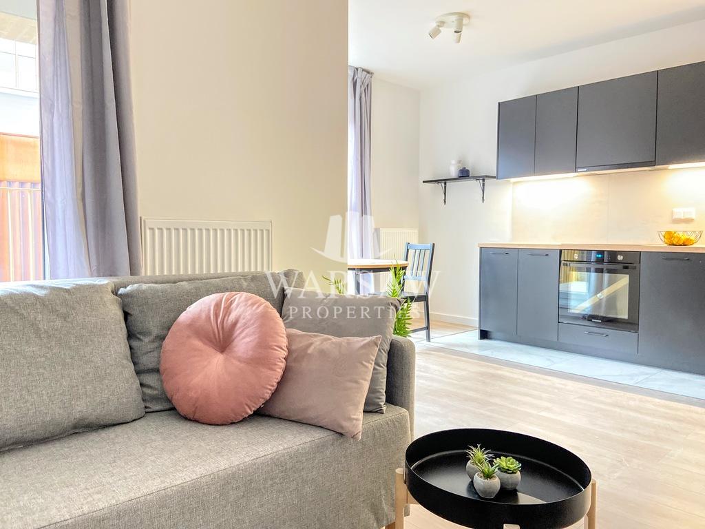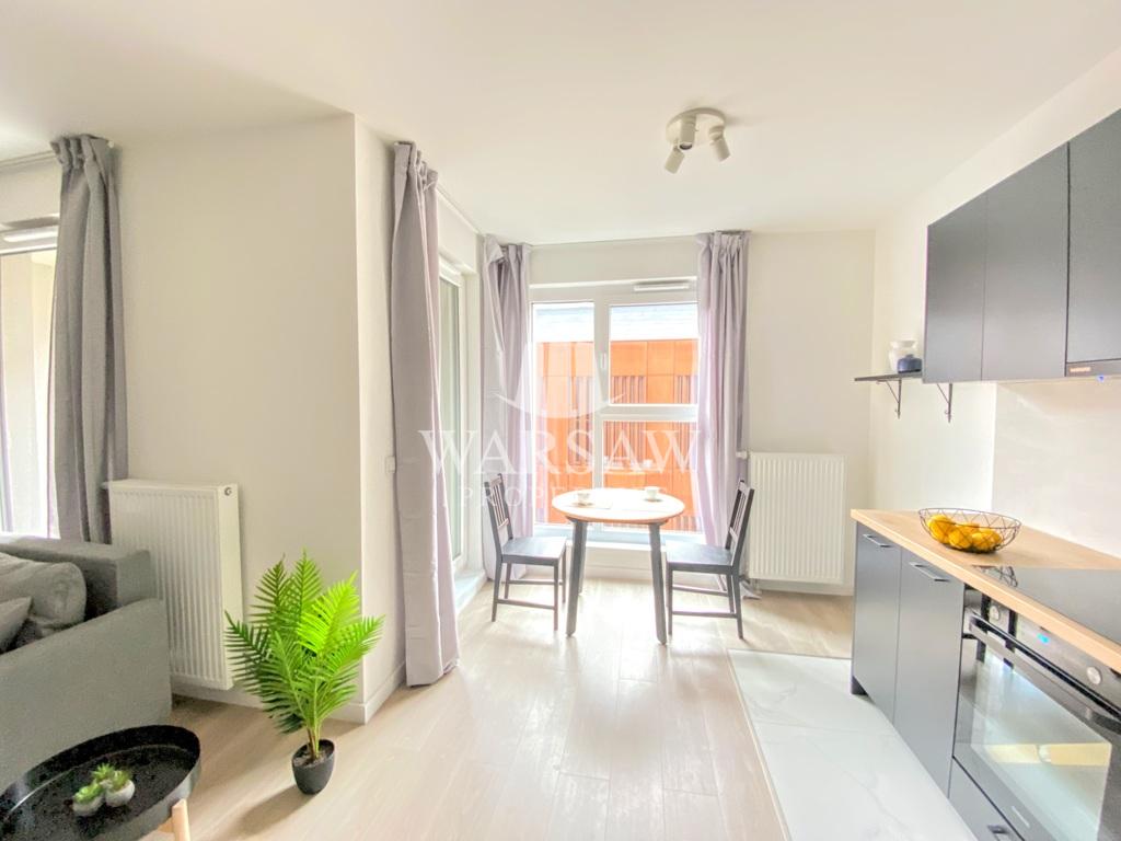 Студія повністю готова до щоденного функціонування, складається з: – світлої кімнати з міні-кухнею з виходом на балкон – міні-кухня обладнана варильною поверхнею, духовкою, посудомийною машиною та вбудованим холодильником, а також столом зі стільцями – вітальня обладнана зручним, великим розкладним диваном (з контейнером для постільної білизни), шафою для одягу, тумбою для телевізора – зручною ванною кімнатою з душовою кабіною та пральною машиною Квартира знаходиться у повній власності разом з KW.