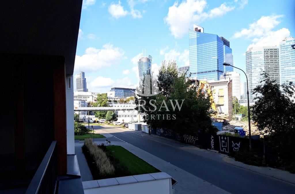The apartment features large windows (facing east), providing plenty of natural light. It offers a beautiful view of Warsaw city center and the 19th District.