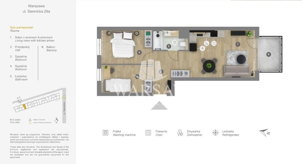 SIENNICKA | GROCHÓW PRAGA POŁUDNIE | NEW 3-ROOM APARTMENT WITH BALCONY | 5TH FLOOR | BEDROOM WITH BED 160X200 | BEDROOM WITH BED 90X200 | FURNISHED – NEW FURNITURE AND APPLIANCES | 55 M2 | BALCONY