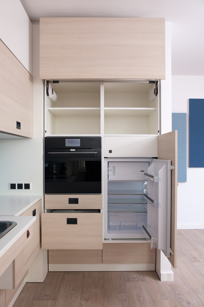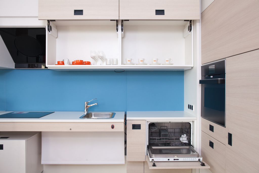 – Kuchnia: płyta indukcyjna, piekarnik, lodówka z zamrażarką, zmywarka, pralka, stół z krzesłami